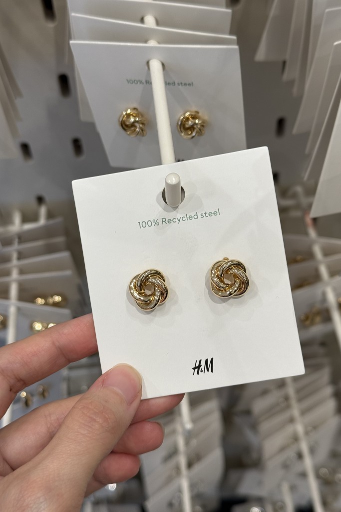 H&M的耳環及戒指都在$200內,雖然耐久性普通用段時間塗層會稍微剝落,但不可諱言容易找到有設計感的款式,且因為價格夠可愛,可以多入手幾個作為穿搭交替用。