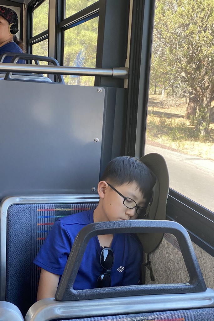 我們在大峽谷的第二天,就利用自駕+藍線及紅線接駁,完成了一日健行、看日出跟日落的超充實行程: